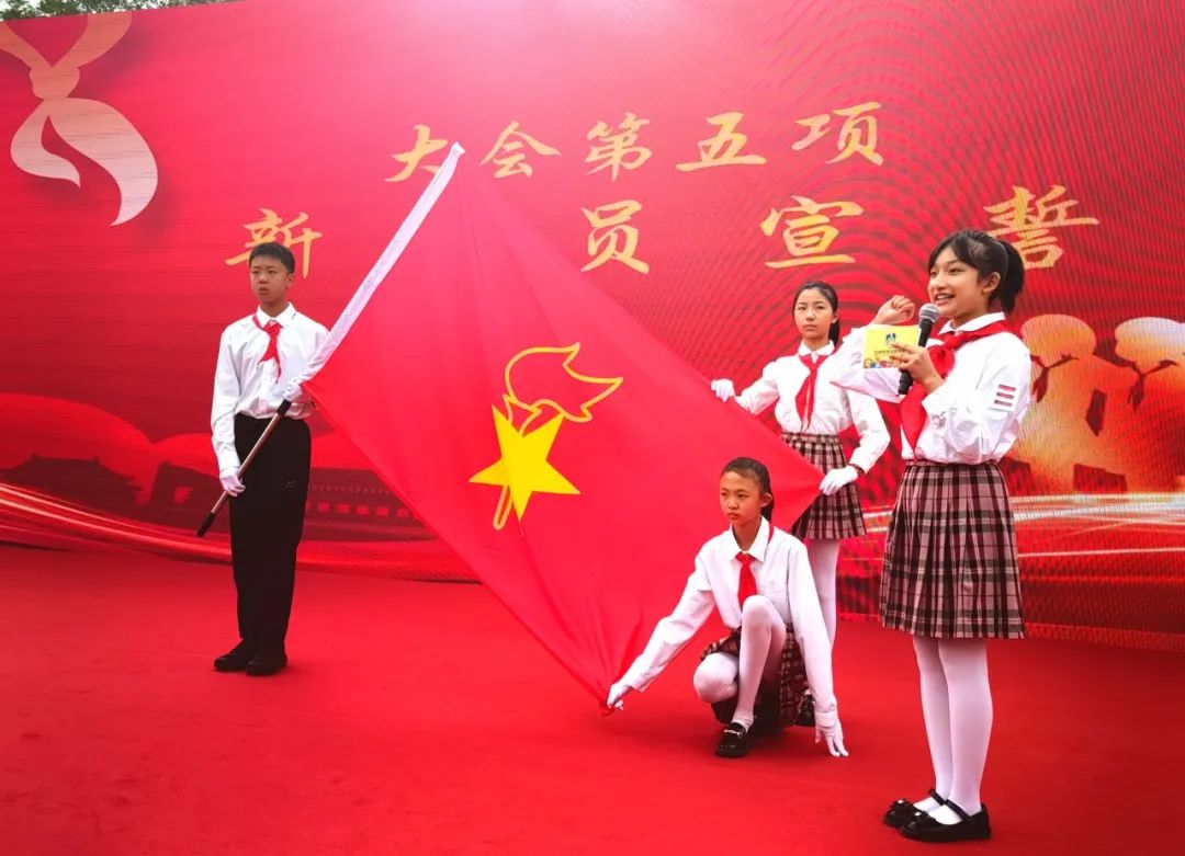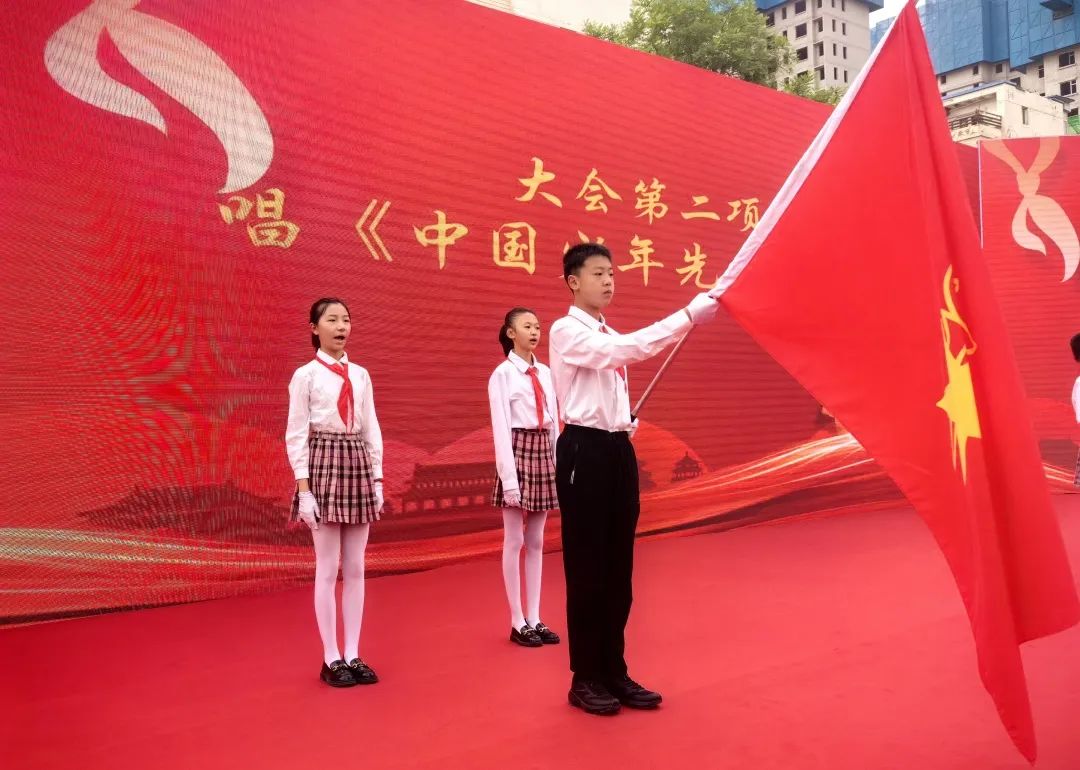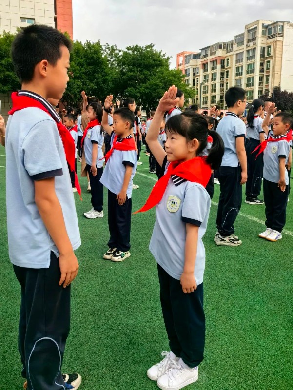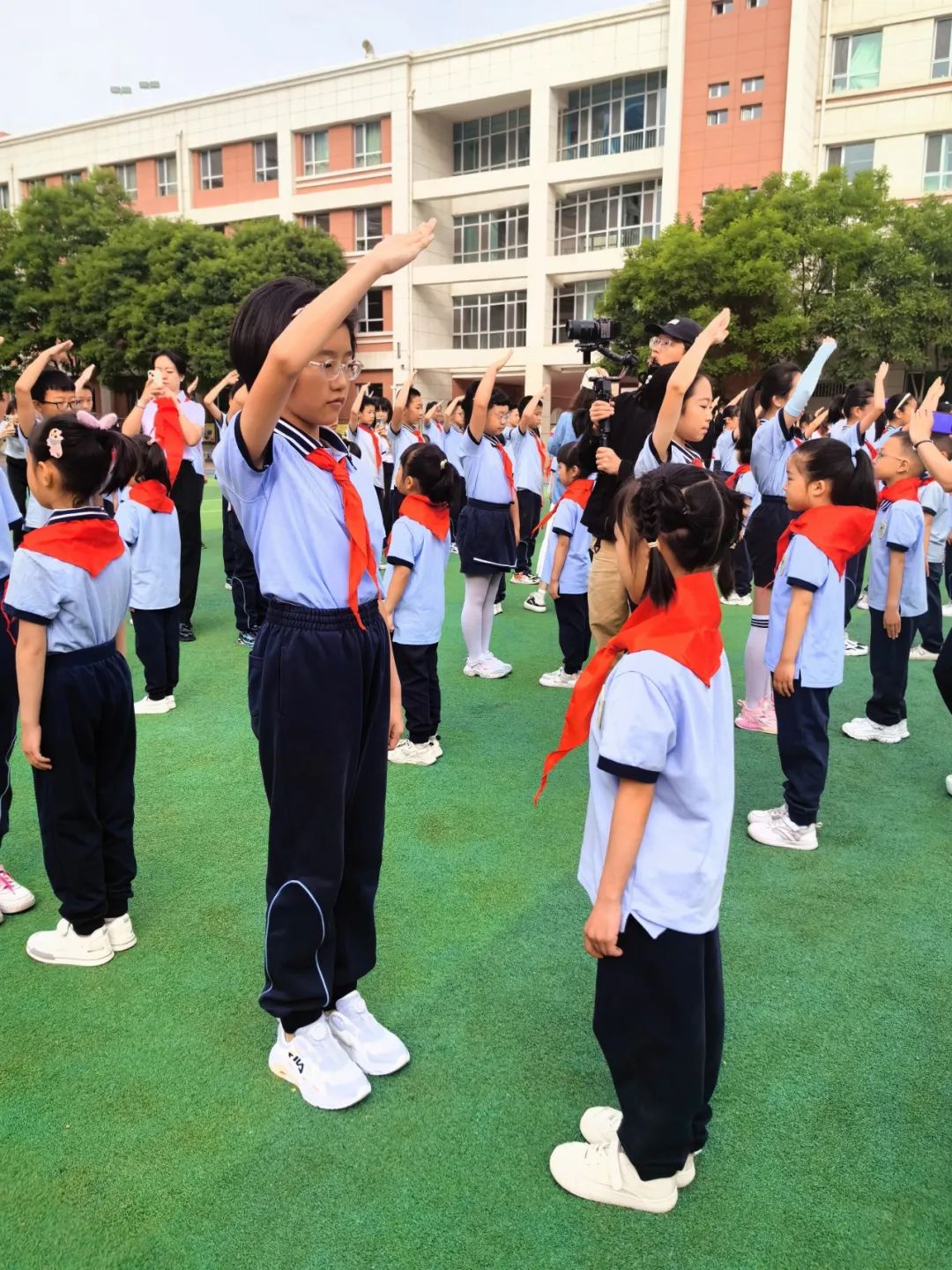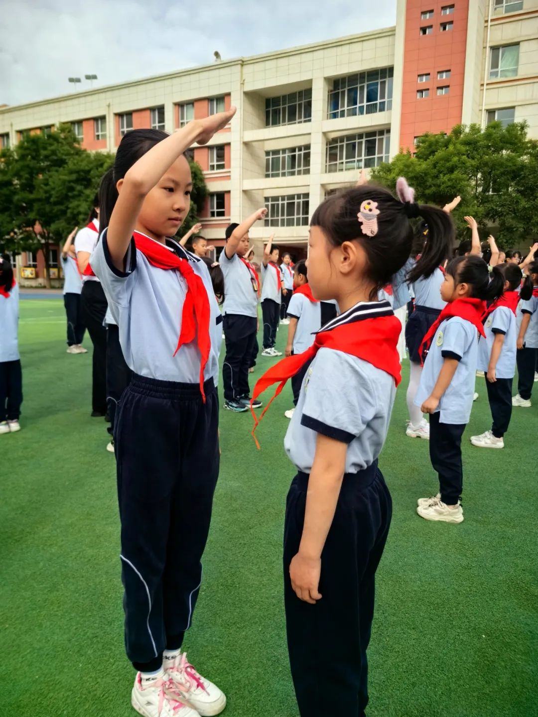 活动伊始,随着庄严的《出旗曲》响起,全体少先队员肃立行队礼,鲜艳的队旗在大家的注视下缓缓前行。紧接着,全体少先队员高唱《中国少年先锋队队歌》,嘹亮的歌声回荡在校园每一个角落,展现了少先队员们的蓬勃朝气和坚定信念。