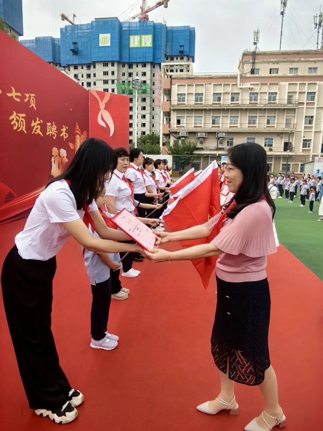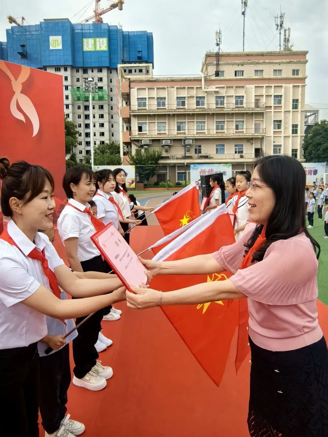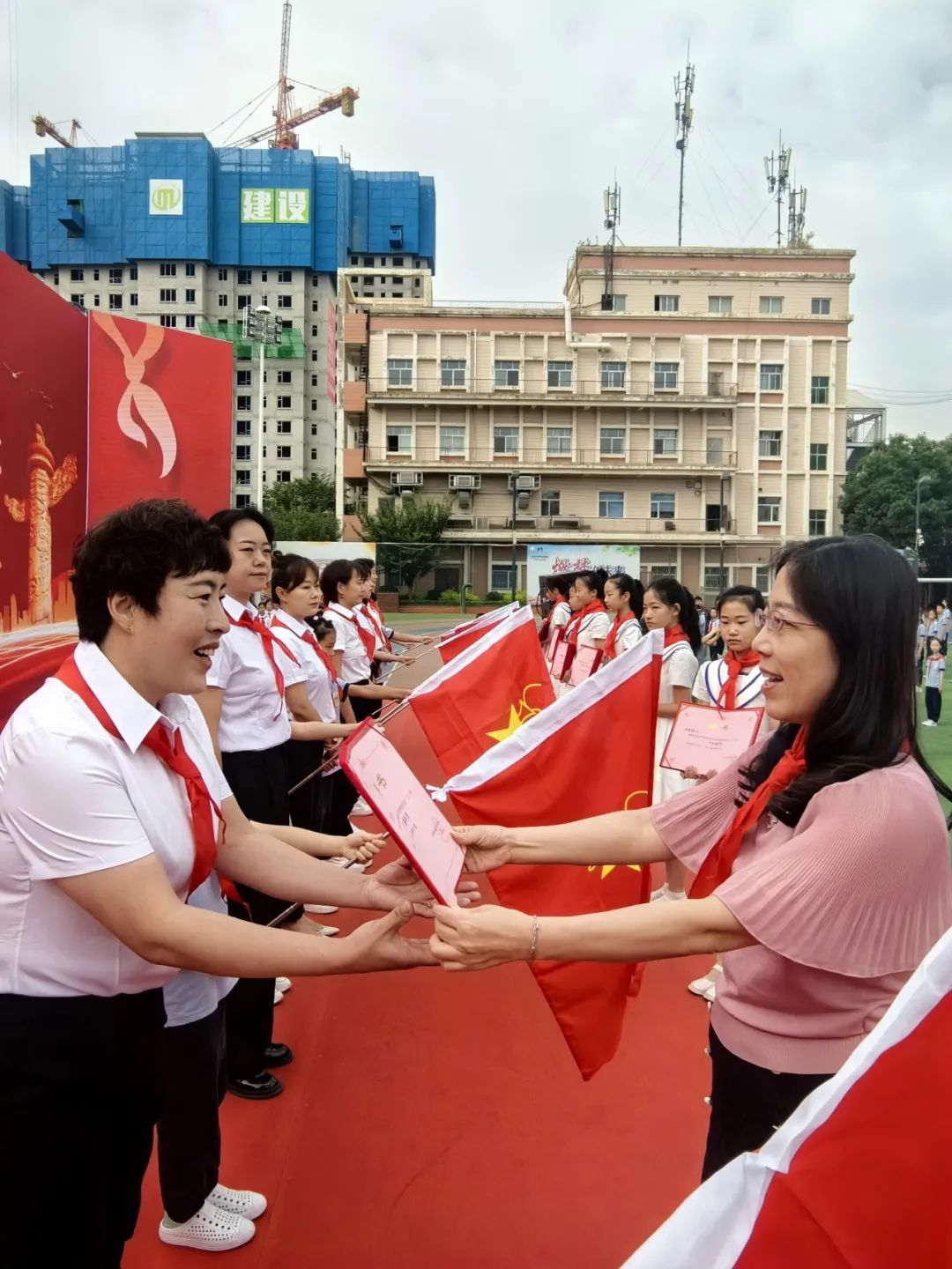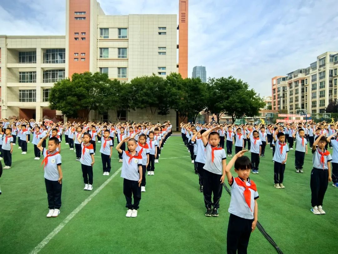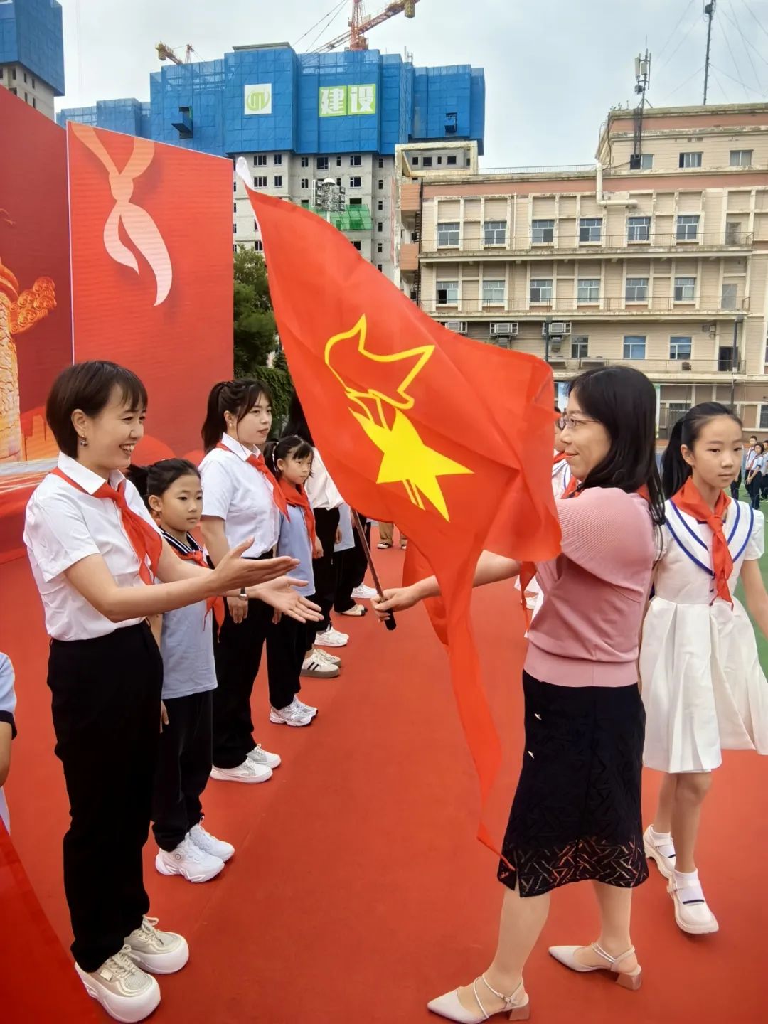 活动伊始,随着庄严的《出旗曲》响起,全体少先队员肃立行队礼,鲜艳的队旗在大家的注视下缓缓前行。紧接着,全体少先队员高唱《中国少年先锋队队歌》,嘹亮的歌声回荡在校园每一个角落,展现了少先队员们的蓬勃朝气和坚定信念。
