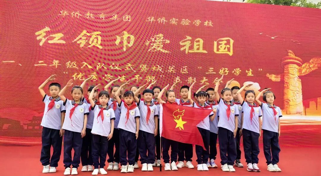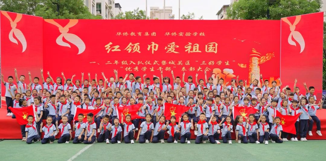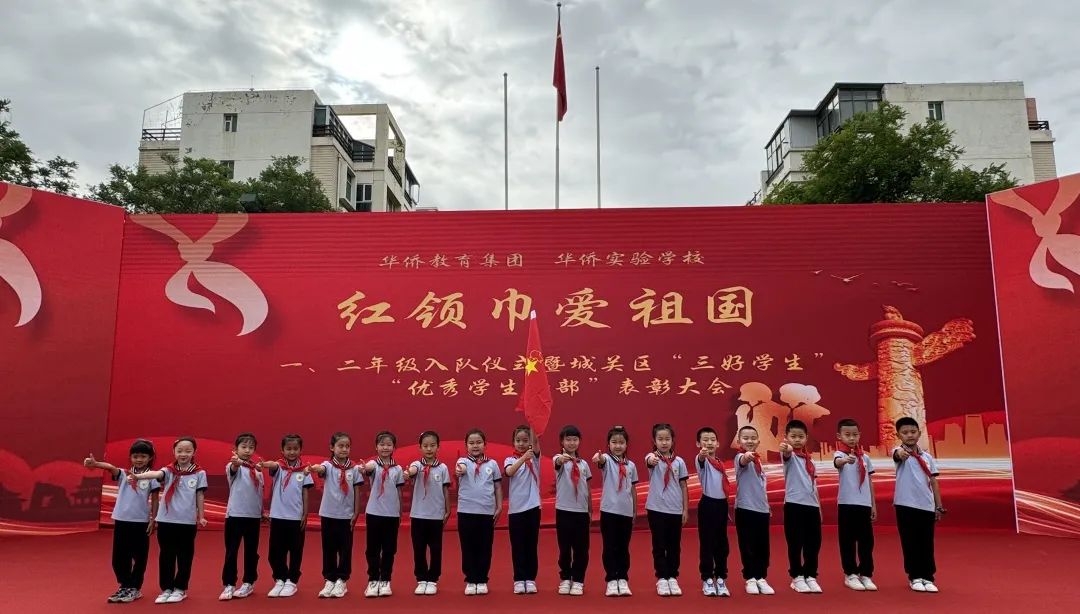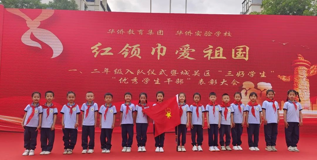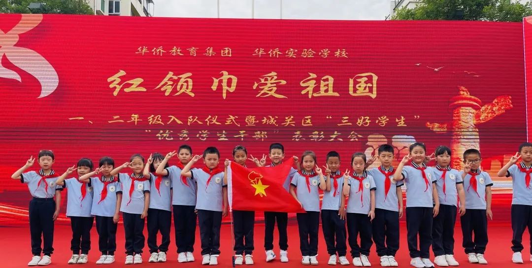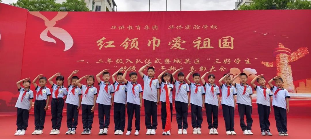 在鲜艳的五星红旗下,华侨实验学校于2024年5月31日隆重举行了一场意义非凡的“红领巾爱祖国”一、二年级入队仪式暨城关区“三好学生”“优秀学生干部”表彰大会。此次活动不仅见证了新一代少先队员的加入,更是对优秀学生的一次表彰和鼓励。