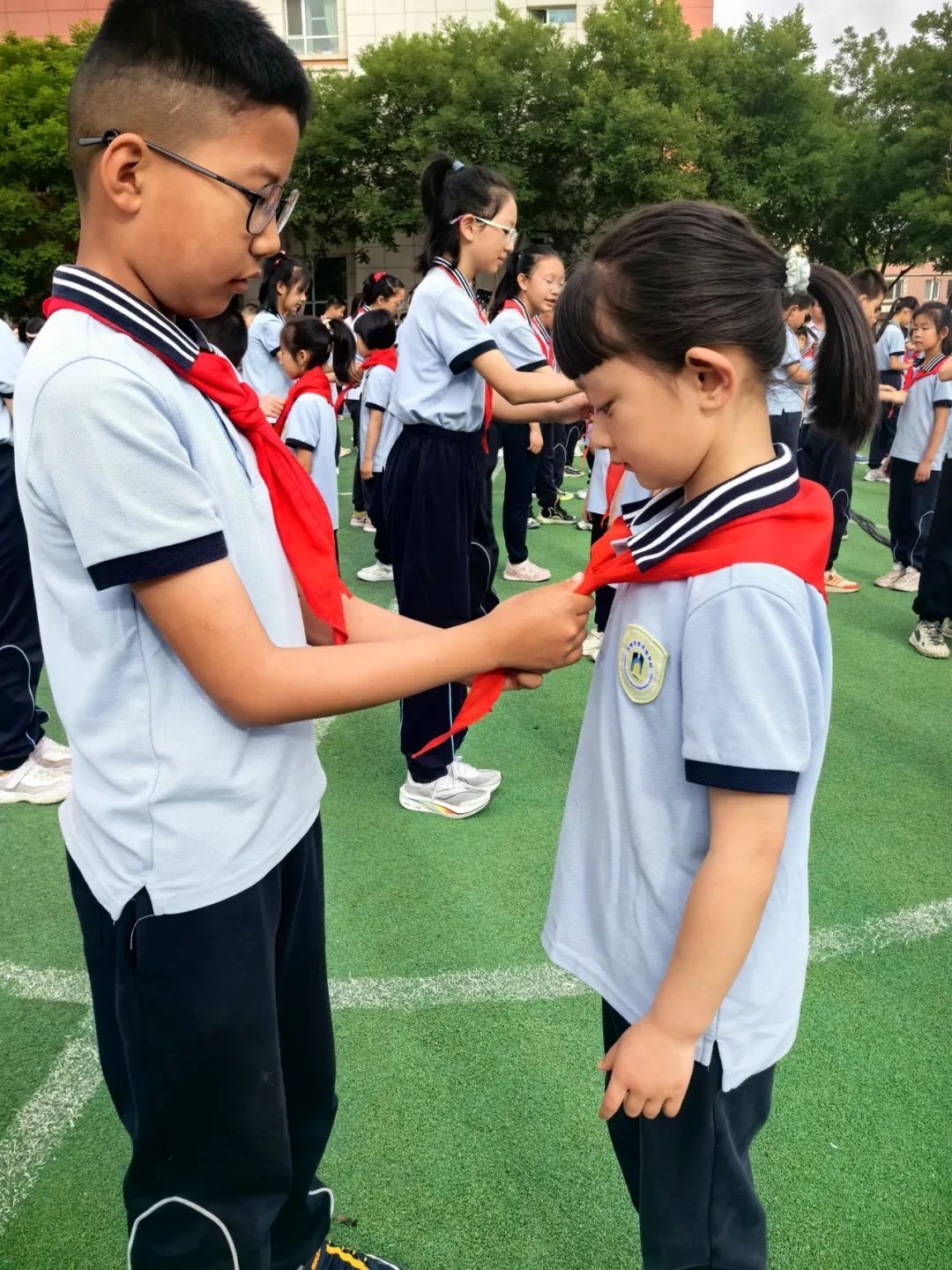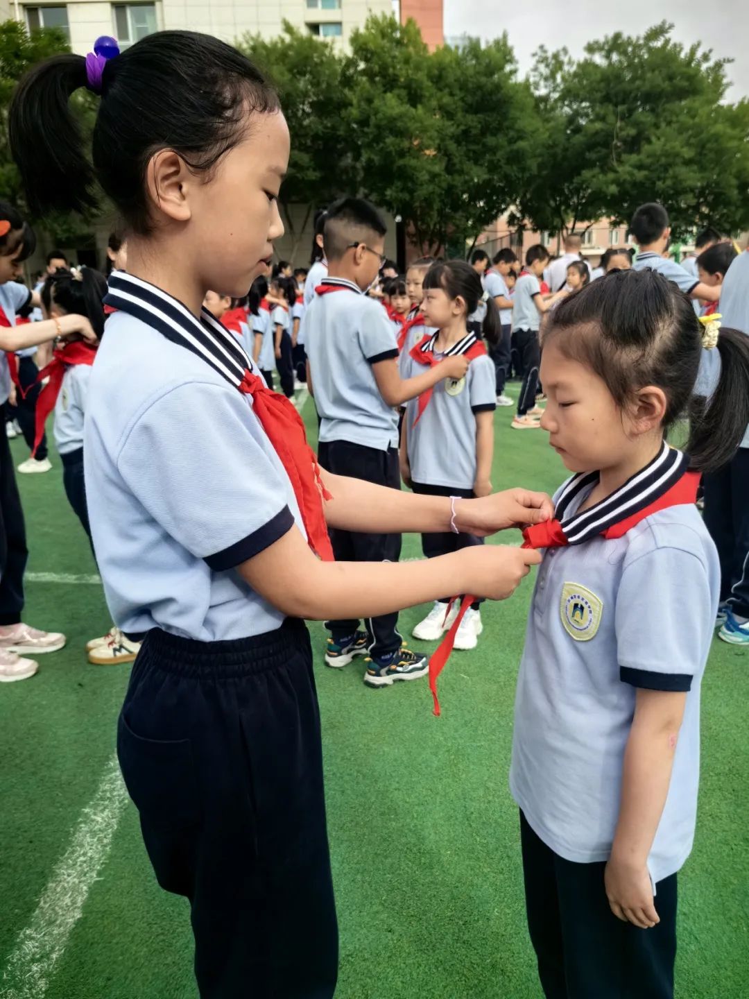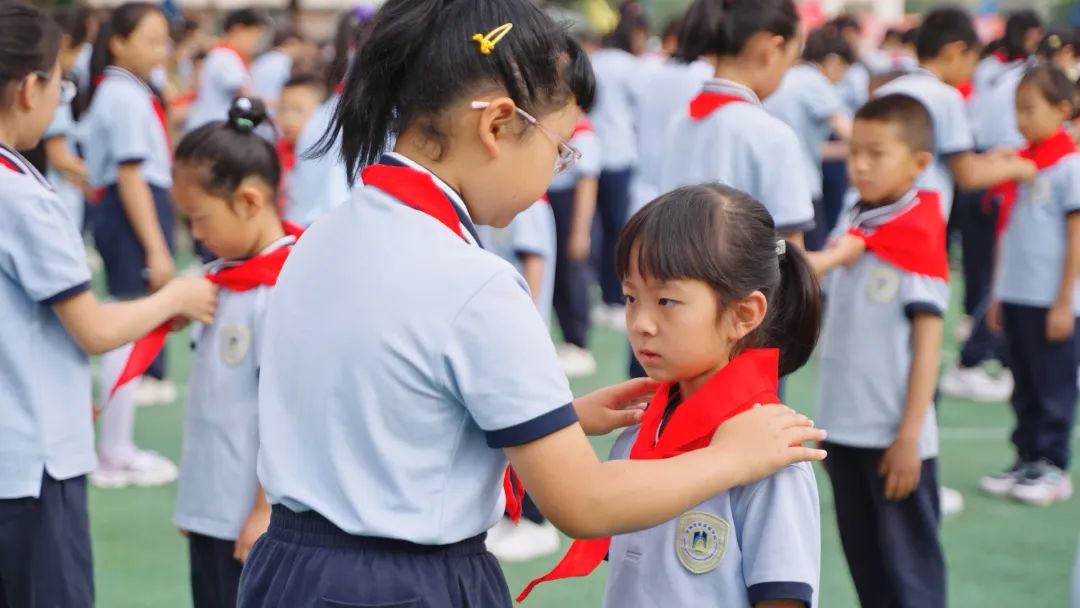 在鲜艳的五星红旗下,华侨实验学校于2024年5月31日隆重举行了一场意义非凡的“红领巾爱祖国”一、二年级入队仪式暨城关区“三好学生”“优秀学生干部”表彰大会。此次活动不仅见证了新一代少先队员的加入,更是对优秀学生的一次表彰和鼓励。