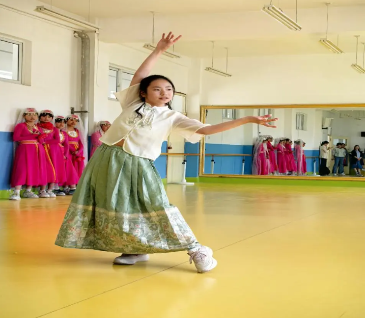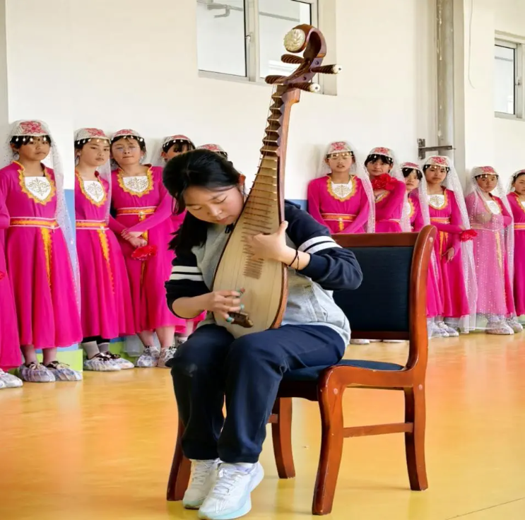 当日上午,兰州华侨实验学校一行18人在王向晖校长的带领下抵达移民中学,受到了该校师生的热烈欢迎。移民中学的学生们带来活力四射的军体操和规范标准的交通指挥操表演,动作整齐有力,学生们精神饱满。诵读节目和非遗民歌表演传递着对传统文化的热爱。“花儿”合唱,优美的舞蹈绽放着青少年的朝气蓬勃。我校学生徐嘉潞带来的舞蹈《咏春》,田晨嘉表演的琵琶曲《天山之春》将活动的气氛推向了高潮。