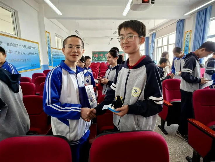 在欢迎仪式上,两校校长互致欢迎词。移民中学王俊国校长表达了对远道而来客人的诚挚欢迎,希望两校学生在此次活动中能够相互学习、共同成长,结下深厚的友谊。我校王校长对移民中学的精心安排表示感谢。联谊活动中,两校学生迅速打破陌生感,热情交流起来。在互赠自制小礼物环节,精心准备的礼物承载着深深祝福与友好情谊,小小的礼物传递着温暖,让现场氛围格外温馨。