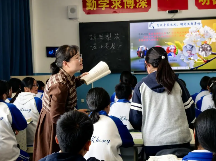 当天下午,我校的孩子们和移民中学的孩子同上一节课。我校王新花老师和移民中学的马玉芳老师执教《驿路梨花》,进行同课异构研讨活动。王老师以独特的情境创设开启课堂,将学生带入到“为《驿路梨花》拍摄公益微电影”的情境之中。在教学过程中,王老师非常注重引导学生自主思考,通过小组讨论等活动,让学生在合作中碰撞思维火花。移民中学的马玉芳老师的课堂则以“寻找小茅屋主人”为主线,通过巧妙设置问题,引导学生逐步深入文本,探讨“梨花”意蕴。
