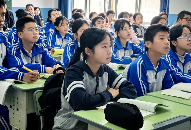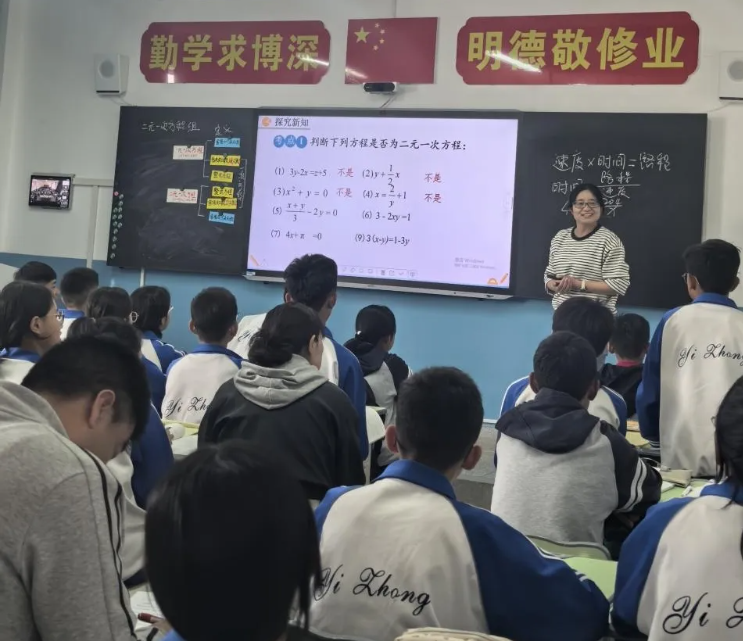 第二天上午,我校马玲老师和公洁老师进行示范课。两校老师共同进行听评课活动。马老师的课以极具吸引力的导入开启,她以说唱的形式温故知新。创设情境,引入现在进行时,同时呈现新知识,生动的画面瞬间抓住学生眼球,激发学生的好奇心与探索欲。公老师的《二元一次方程组》——当数学课堂遇上“国乒拼搏精神”,她以樊振东比赛场景为贯穿主线,将抽象的方程组知识与“国乒精神”深度绑定,打造了一节兼具趣味性、思维性与励志精神的数学课。
