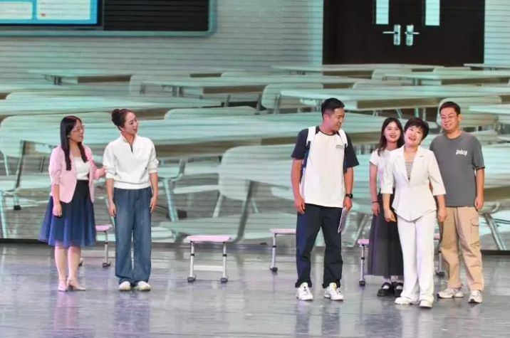 朗诵《少年中国说》以铿锵之声展现了新时代少年的责任担当;舞蹈《妙音反弹》将敦煌传统艺术与现代舞蹈完美融合;戏曲《抬轿》展示了学校在传统文化传承方面的成果。特别值得一提的是师生共同编演的校史剧《华彩逐梦》,通过“破茧-绽放-逐梦-如愿-启航”五幕剧情,以首届校长从初涉杏坛到廿载风华的时空对话,娓娓道来二十年的教育历程。当舞台上呈现校长二十年如一日坚守教育理想的感人画面时,现场观众无不为之动容,将晚会推向情感的高潮。
