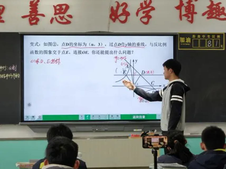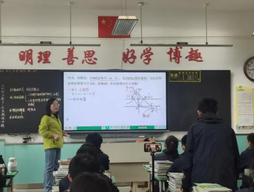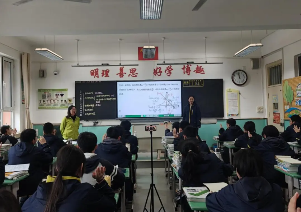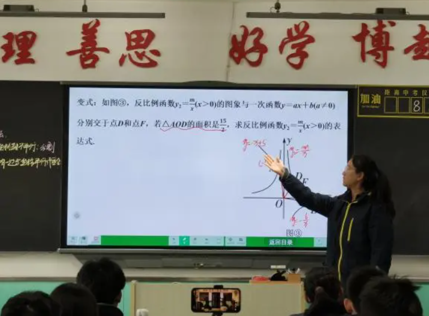 春风扶杨柳,日照映花红。为深化新课标背景下课堂教学改革、推进“5D3H4Y”教学模式提质增效,3月27日,城关区华侨实验学校与积石山县移民中学通过云端联动,开展九年级数学复习课联合教研活动。两校教师共同观摩了数学教研组长陈雪云老师执教的《反比例函数与一次函数综合练》,并围绕课堂实效展开深度研讨,共探核心素养落地的教学新路径,为九年级数学复习备考注入新动能。这是一次知识的传递,更是一场心灵的对话;这是一次教育的交流,更是一次智慧的碰撞。